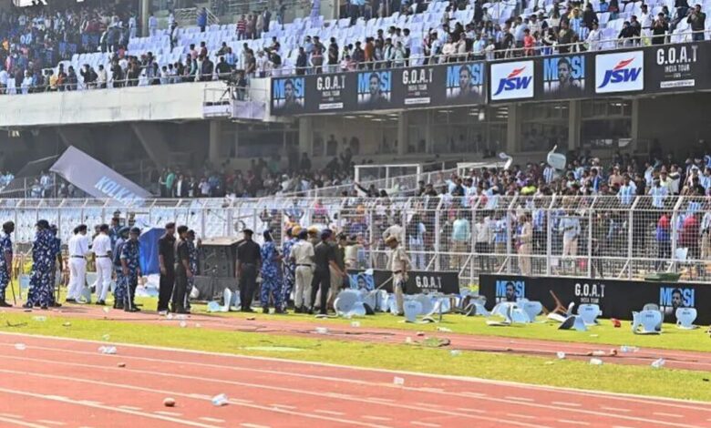 تور هند لیونل مسی با هرج‌ومرج آغاز شد؛ جایی که هواداران خشمگین پس از حضور کوتاه ستاره آرژانتینی، صندلی‌های ورزشگاه را به سمت زمین پرتاب کردند. مسی، مهاجم تیم ملی فوتبال آرژانتین و باشگاه اینترمیامی، تنها حدود ۲۰ دقیقه در ورزشگاه سالت‌لیکِ کلکته حضور داشت. برخی تماشاگران از حصار اطراف زمین بالا رفتند و اشیایی را از سکو‌ها به داخل زمین و پیست دوومیدانی پرتاب کردند.
